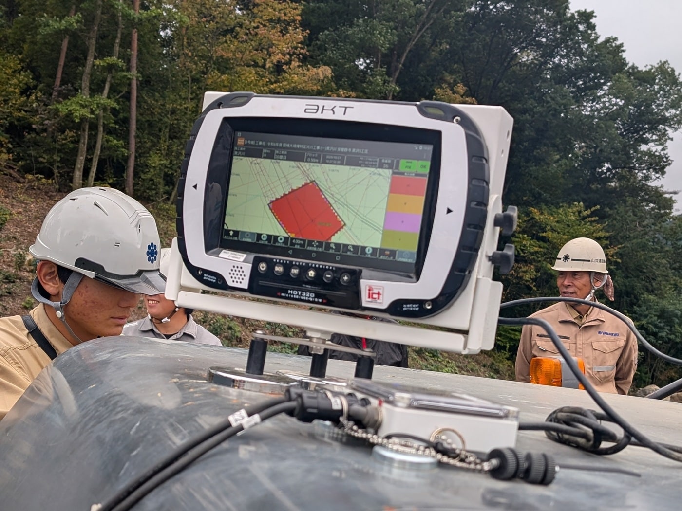 また、重機やローラーによるICT施工が導入されており、埋土の厚さや転圧範囲、回数などがデジタルで管理されている様子を間近で見ることができました。最新技術を活用した効率的かつ精度の高い施工に、非常に感銘を受けました。