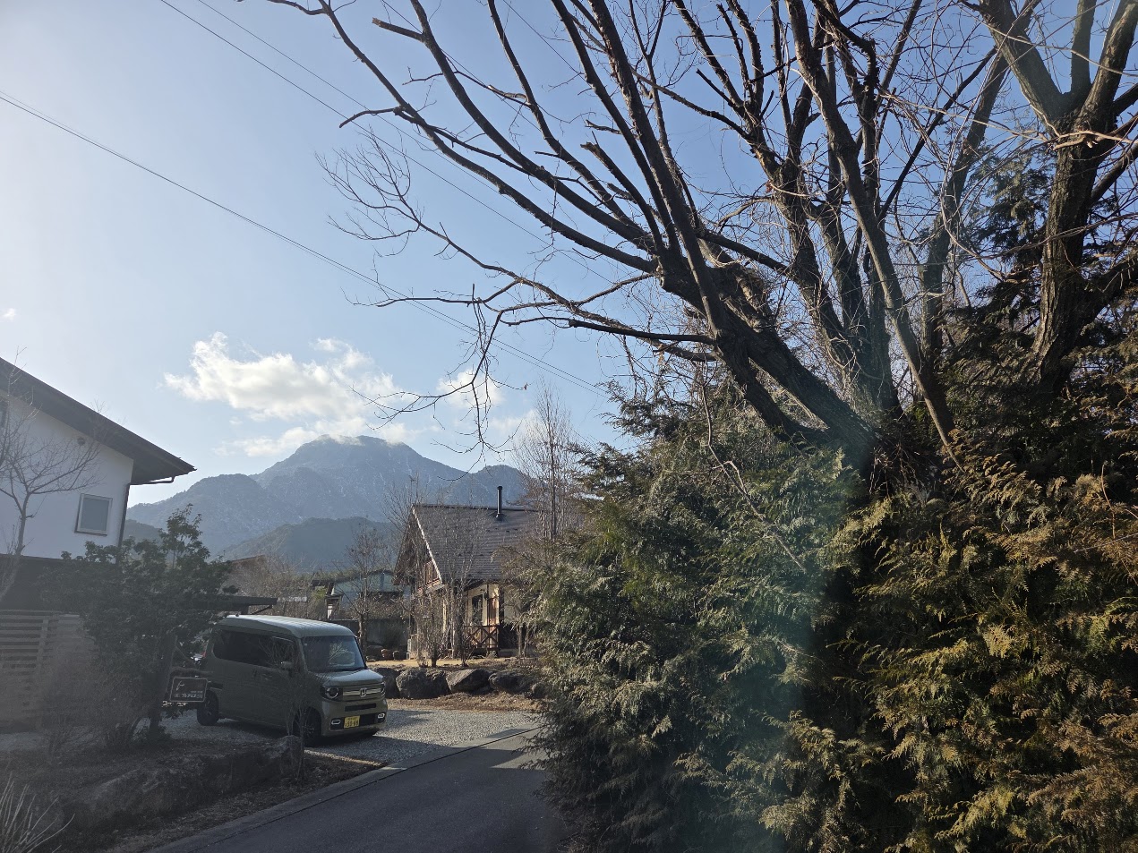 有明山を望み、北側には農園が広がっています