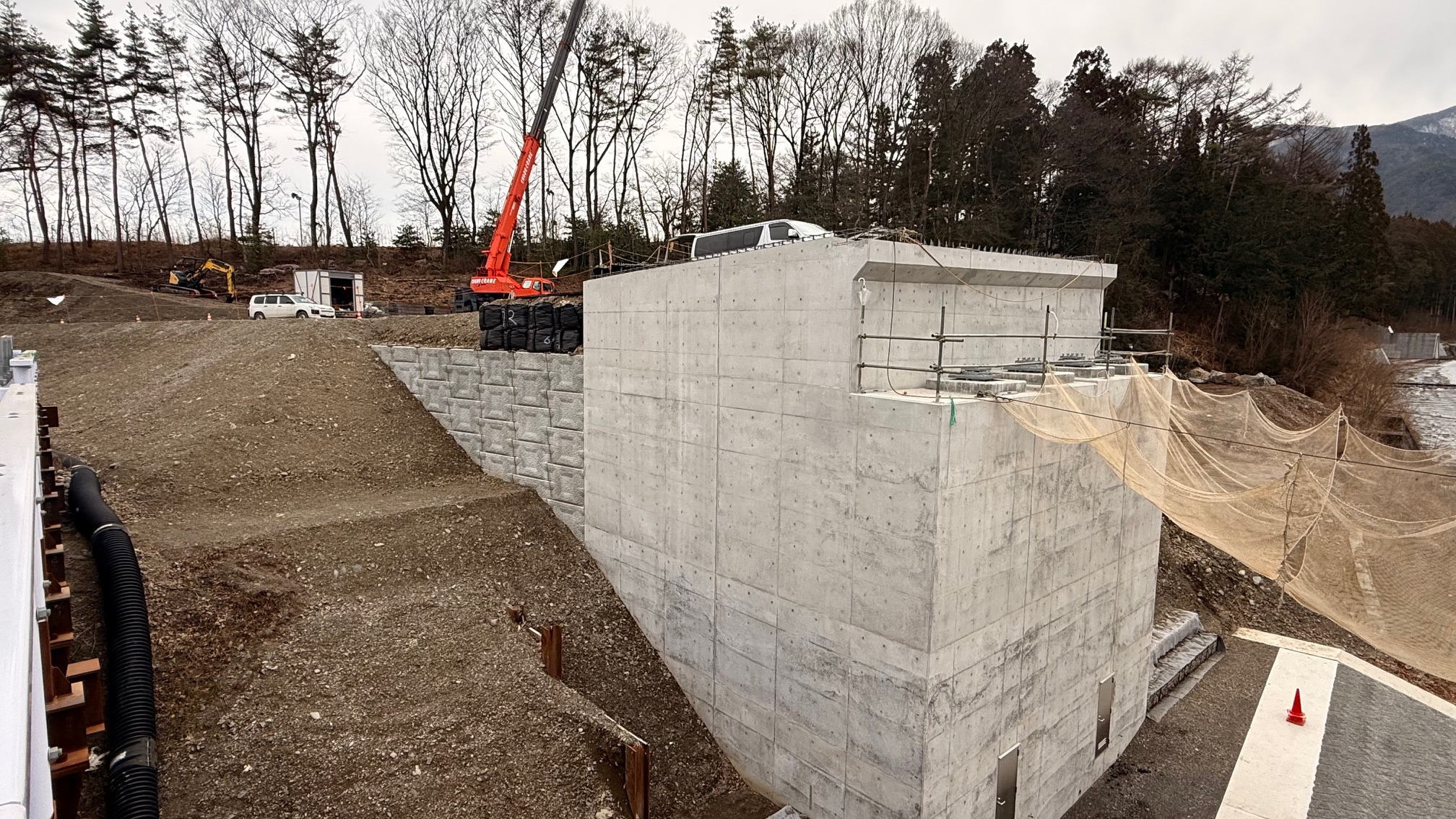 盛土の高さ・幅・締固め状況を検測し、設計通りの品質を確認。